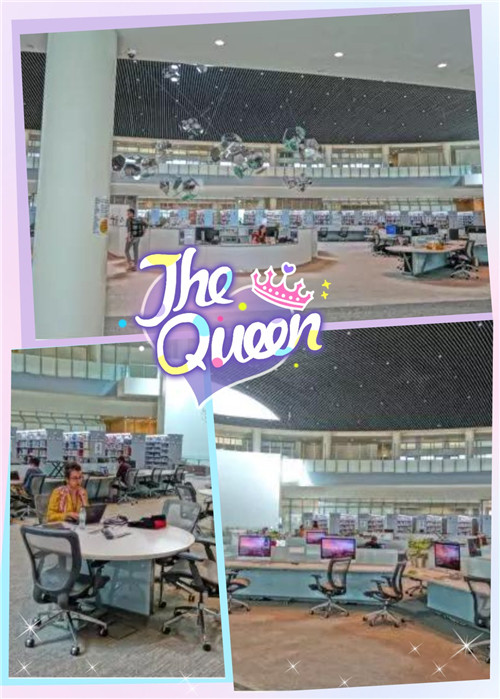 在校园参观环节,我们的导游是一名韩国出生菲律宾长大的大二学生。在她的带领下,我们对阿布扎比分校的校园生活有了更直观的认识。这里对于1000多名学生来说真是太宽敞,太先进了。图书馆可以共享纽约和上海分校的资源,学生可以带自己的笔记本来学习,也可以随意使用这里的苹果一体机。假如你不喜欢苹果系统,另一侧有很多WINDOWS系统的电脑供你选择。