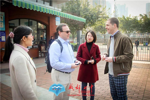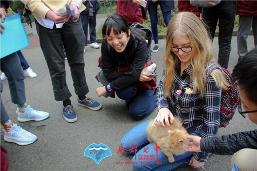 在国际部学生的带领下,Masters 师生参观了七中的教室、食堂、操场,了解国际部学子的日常学习生活环境。路上还偶遇了一只校猫,竟然很不客气的跳上了外国朋友的身上,引得所有人围观。或许,这也是七中欢迎新朋友的新方式。