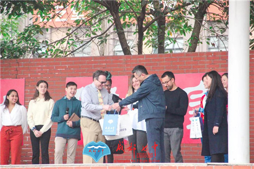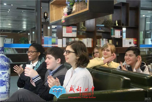 除此以外,成都七中也特别为这群远道而来的客人准备了隆重的欢迎仪式,成都七中胡勇校长致辞,并且与The Masters School老师代表Dr.Fish互赠礼物。作为感谢,Masters的两位学生代表也精心准备了歌曲《Danny Boy》,悠扬的歌声回荡在七中校园,浸润了每一名师生的心。