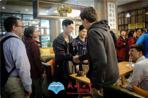 3月11日(上周一),成都“流浪的太阳”终于难得的露了面,国际部每一名师生都在为此欢呼,这一天,同样让人感到幸福的是,我们迎来了友好姊妹学校,美国知名私立贵族中学The Masters School师生一行的到访。成都七中国际部学术校长Adam,七中国际部主任赵茸早早就到校门等待迎接,当一辆大巴缓缓停靠在南门外,欢呼雀跃的声音也越来越近,对,他们终于到了“朋友,好久不见~”