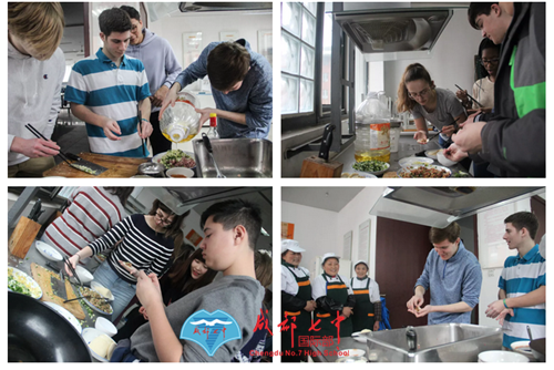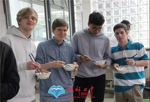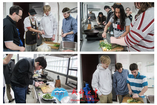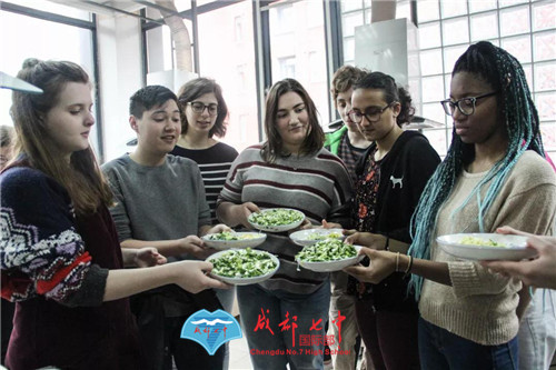 在学校食堂,美国师生体验了做饺子——从切菜,和馅儿,到包饺子,下锅,烹饪课老师一步步教学,只为让他们体验正宗的成都味道。
