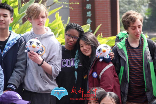 临别时,国际部的老师为Masters师生准备了礼物——成都七中国际部办学20周年特别定制的“鹰小七”,大家开心的合影留念。不过有的学生却显得有些闷闷不乐,原因是太喜欢这儿了,甚至表示不想离开成都了,依依不舍,期待来年再次相聚。