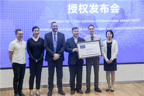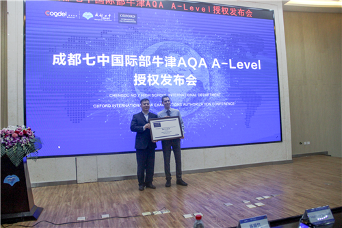 授牌仪式现场,成都七中国际部的学术校长AdamMcroy表示:“我在成都七中国际部已经工作了12年,一直都很想开设A-level课程,今天非常高兴实现了这个愿望。尤其作为一名从英国来的老师,我非常开心地看到会有越来越多的成绩优异的同学能够到英国的名校留学深造。”他表示,开设A-level课程,可以让更多同学去申请牛津、剑校、G5类的知名大学,A-level课程会让他们如虎添翼。“我期盼七中国际部和牛津AQA有一个长远的、卓有成就的合作。同时,通过我们双方共同努力,学生们能够进入他们理想中的英国大学并在毕业后开启他们成功的人生。”