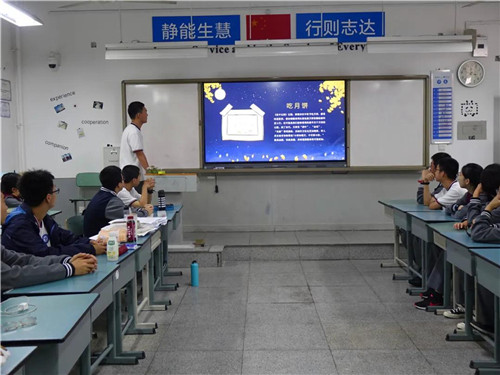 在高一1班,首先由班长为同学们介绍中秋节的来历、习俗、故事,在同学们对节日有了进一步的认识之后,在班上组织了一个名为hangman的游戏。班长说,“我希望同学们能够在开心的同时可以学到单词,真是最好的”。最后游戏输了的队伍还接受了严峻的惩罚——吃芥末。