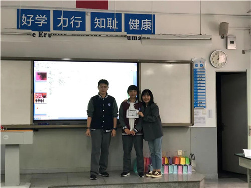 活动进行到尾声,参加活动的老师们评分选出最喜欢的节目,并进行了隆重的“颁奖仪式”。每位同学都为其他人发放了由班集体为同学们准备的小礼品盒,还附上由班主任为每个人“量身定做”的祝福语。