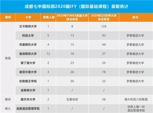 1999年成都七中国际部从NCUK引进IFY国际基础课程(International Foundation Year),迄今已有21年的办学历史和成功经验。
