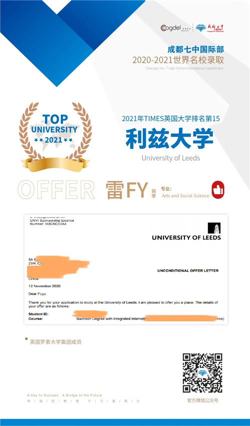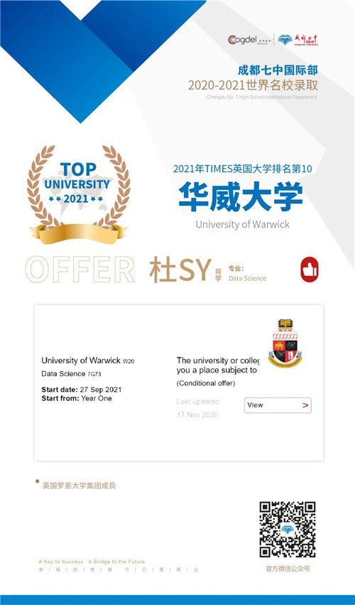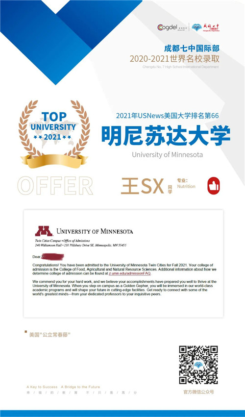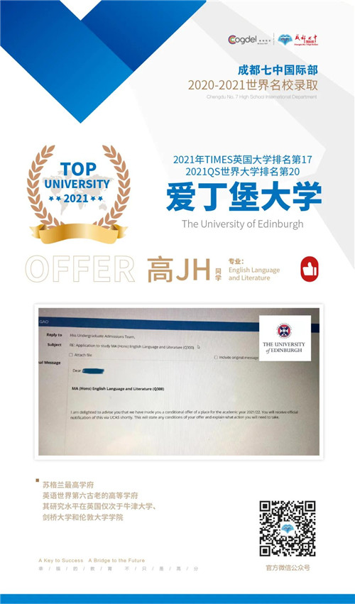 恭喜获得OFFER的同学们,同时感谢成都七中国际部的中外教以及升学老师们的辛勤付出。期待更多录取的好消息!