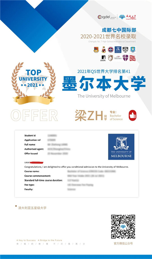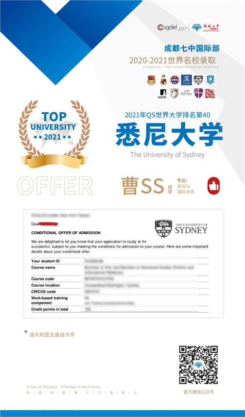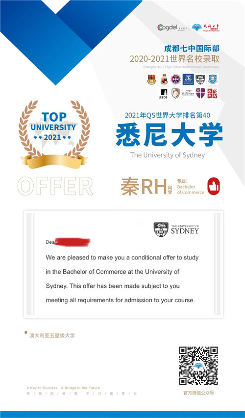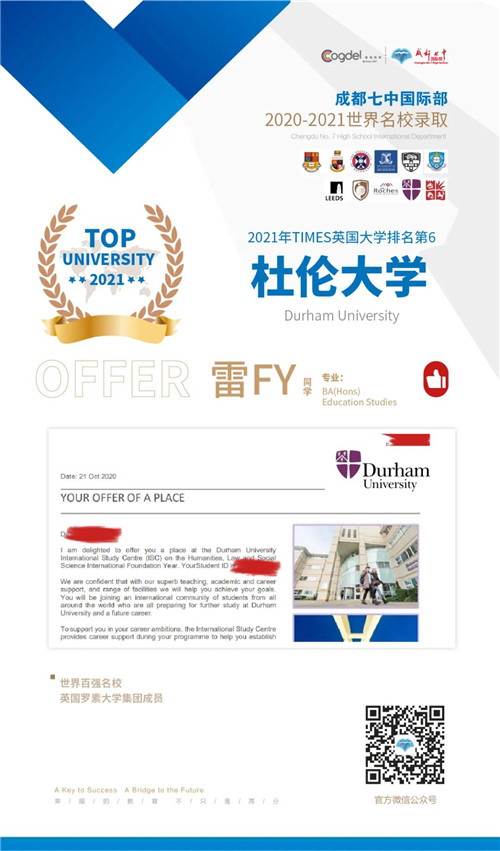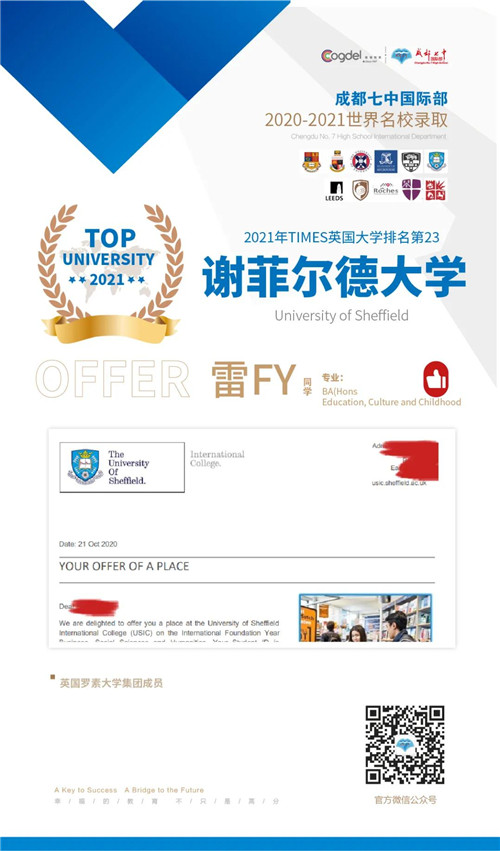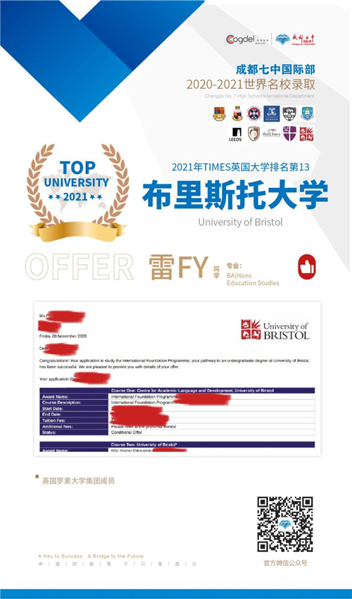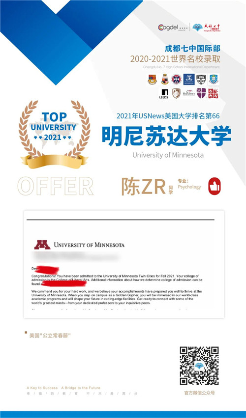 恭喜获得OFFER的同学们,同时感谢成都七中国际部的中外教以及升学老师们的辛勤付出。期待更多录取的好消息!
