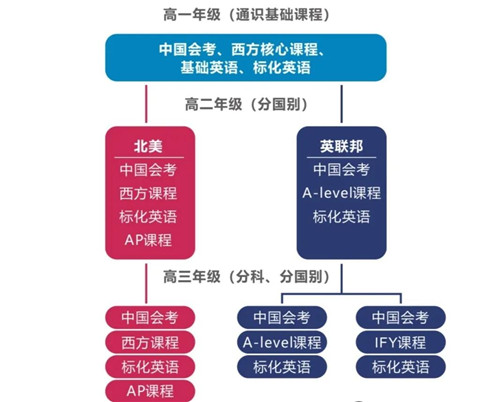 开设课程包括:中国普高会考课程/美国高中课程/AP课程/A-level课程/IFY课程/加拿大BC课程/ 英语类课程/生涯指导及综合素质课程/竞赛类课程。