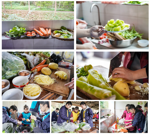 然而这并没有难倒大家,很快同学们便做好分工,所有师生共同参与,洗菜、切菜、烧火、烹饪......一切在大家的默契配合中有条不紊的进行。