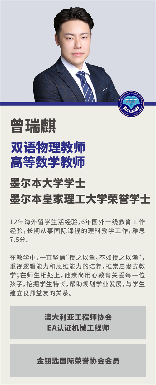 曾瑞麒 成都七中国际部双语物理/高等数学教师