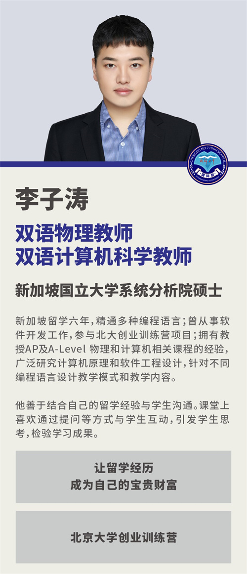 李子涛 成都七中国际部双语计算机科学老师