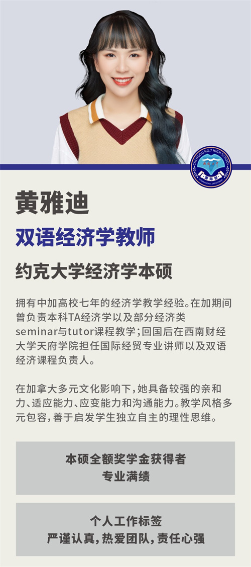 黄雅迪 成都七中国际部双语经济学教师