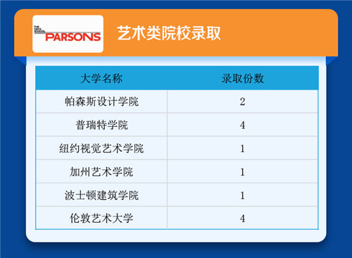 申请艺术院校的学生中,100%获得世界顶尖艺术学院录取!包括帕森斯设计学院,纽约视觉艺术学院,(英国)伦敦艺术学校等
