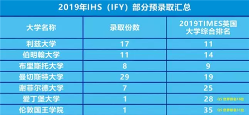 热烈祝贺我校国际部2019届学子总计获得390+份世界知名大学OFFER,其中IHS国际高中(AP)课程收获包含范德堡大学,斯沃斯莫尔学院,墨尔本大学、东京大学在内的302份录取; IFY课程斩获包括英国"常春藤联盟" -"罗素集团”、“红砖大学”在内的90+份英国名校录取。