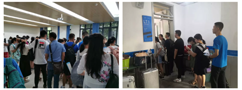 比我们预想的时间要早很多,国际交流中心不到8点就挤满了赶来的新生及家长。成都的太阳也毫不吝啬的表达着自己的热情,至上午9时阳光已经照的人快睁不开眼,“可能是学生们的热情洋溢与青春热血让今天的校园格外热一些吧。”有老师这样说到。