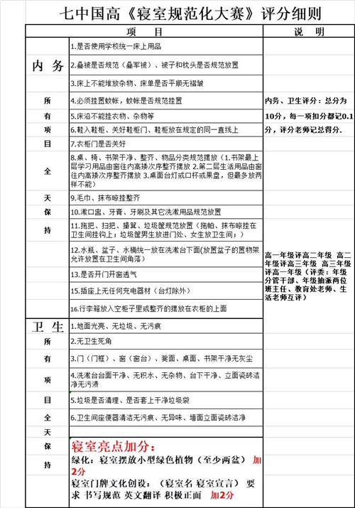 如果说上周的教室美化大赛考验的是国际部学子天马行空的创意与想象,那么,寝室美化大赛则是要求同学们“绝对化”的服从——严格按照《寝室规范化大赛评分细则》来执行,而不是用“我觉得可以”这样的自定义标准。
