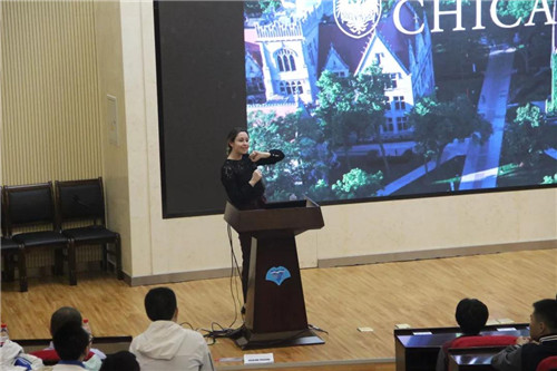 芝加哥大学招生官Michelle Trimpe介绍了芝加哥大学的创办历史和理念,并从核心课程设置、专业发展的可能性、大学可以提供的专业发展支持、学院制的校园生活等方面对芝加哥大学的情况进行了详细的分享说明。