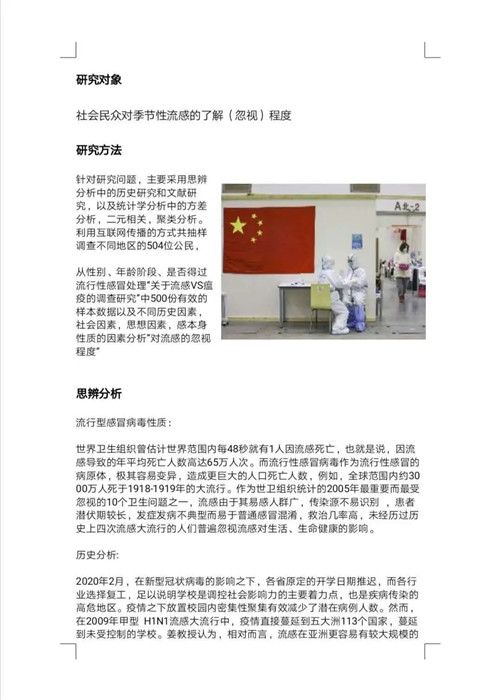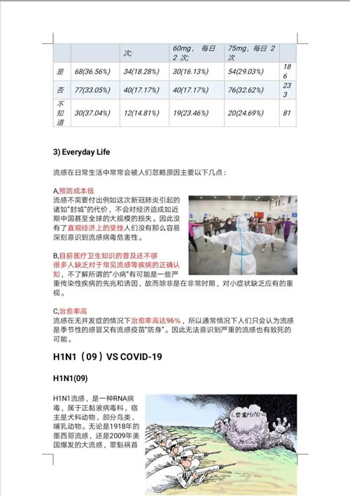 我还记得为调查人群对流感的忽视程度制作了一份调查问卷,预期是两天左右我收集300份,最后大家合力传播得到500份有效数据,好多填问卷的朋友来跟我讲“发现自己真的需要加强对流感的重视”,听着挺开心的。大家都非常积极主动,把公益放在心上,我们会及时的在群里或者私下交流不同的问题,这样任务的进度条和质量就可以度量了。