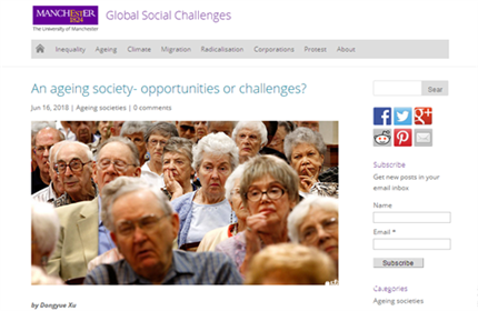 2018年6月,曼彻斯特大学的官方网站上一篇以 《An ageing society-opportunities or challenges?》为题的作品吸引了大家的目光。 文章对老龄化产生的原因、带来的影响和挑战的阐述以及对社会发展的思考,无不体现了作者作为国际化人才展现的责任意识。而作者,正是成都七中国际部 2017届IFY英澳班毕业生,曼大大一学生——徐东玥(现已大二)。对一位一年级的国际学生来说,自己的作品能在大学的官方网站上展示是相当酷的一件事,更不用说是在曼大这样一所以教学严谨、学术风气自由著称的大学。而这,当然离不开长期的知识积累与坚持不懈的磨练。