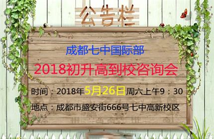 5月26日周六上午9点,成都七中国际部2018初升高到校咨询会,火热报名中......