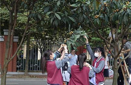 校园中的枇杷树,于寒冬中凌寒吐蕊,花蕾满枝,于春季结实,努力生长,终收获初夏满枝硕果。