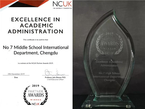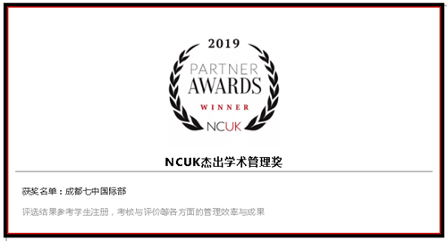 凭借过去出色的学术管理,成都七中国际部荣获NCUK杰出学术管理奖。