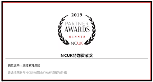 和NCUK有着20年合作历史的康德教育集团在本次颁奖典礼中荣获NCUK特别贡献奖。