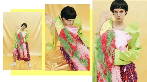 这张是最后的成衣展示。一般服装设计作品集最后都会有成衣制作的部分,我是一个项目两套,一共四套,这是其中一套。做这个也很花时间,还要和做成衣的厂家沟通,联系模特摄影师进行拍摄最后还有修片,一定要预留足够的时间。