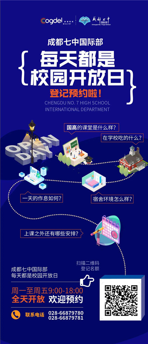 近期活动、为让家长及学生全面了解成都七中国际部学生的学习和生活,我校特别开展每天都是校园开放日活动,诚邀家长及学生预约到校参观,欢迎大家踊跃报名