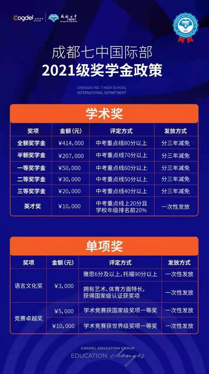 No.7 成都七中国际部奖学金政策