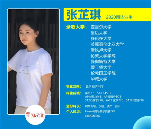 不以成绩为标准,追求更加丰富的体验,也为更加完整的成长,3年前,已经有过留学经验的张芷琪义无反顾的选择在七中国际部度过自己的青春,如今,她不仅获得加拿大TOP1麦吉尔大学、多伦多大学、UBC大学的offer,英国G5名校伦敦大学学院、爱丁堡大学、伦敦国王学院等一众世界名校也纷纷递来橄榄枝。