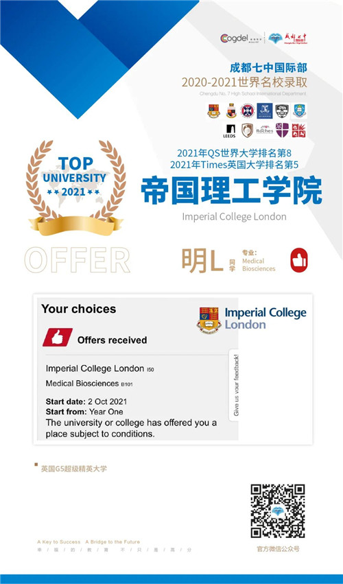 恭喜获得OFFER的同学们,同时感谢成都七中国际部的中外教以及升学老师们的辛勤付出。期待更多录取的好消息!