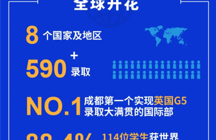 截止至5月17日,七国学子斩获: 8个国家及地区共计590+份录取 88.4%学生世界TOP100院校录取 成都地区唯一收获两份牛津大学录取的国际部 成都第一家实现英国G5本科录取大满贯的国际部 除英、美、加外,本届毕业生在中国香港、澳大利亚、荷兰、瑞士、法国等国家及地区的录取也同样亮眼,取得多个国家和地区本土院校或专业排名第一的院校录取!